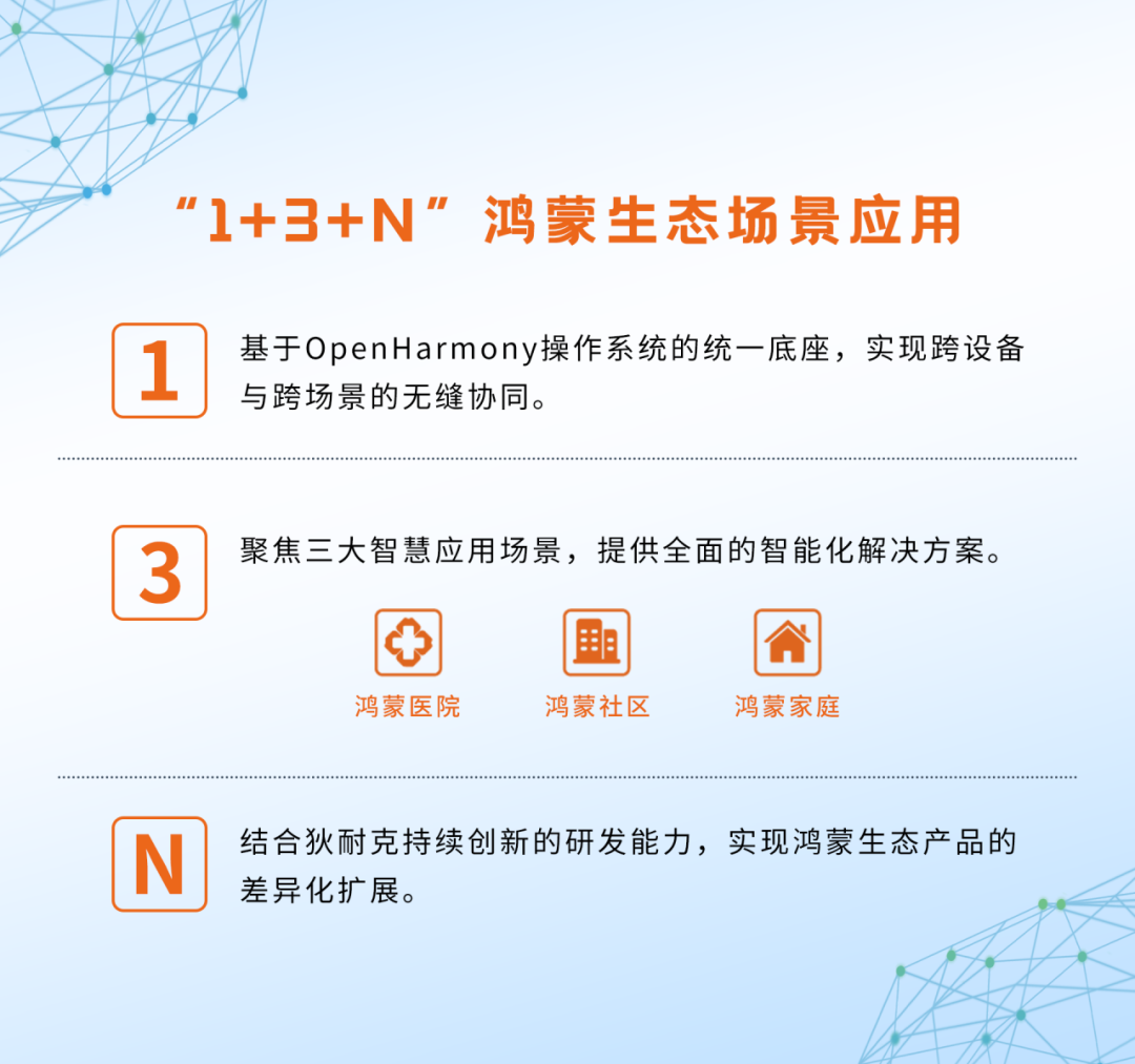 身为鸿蒙生态钻石级合作伙伴,狄耐克依托OpenHarmony操作系统的强大能力,结合自身深厚的技术积累和创新能力,深入布局“1+3+N”智慧蓝图,并联合启动了“百城万户鸿蒙社区家庭战略”,旨在提供自主可控的国产化智慧空间解决方案。